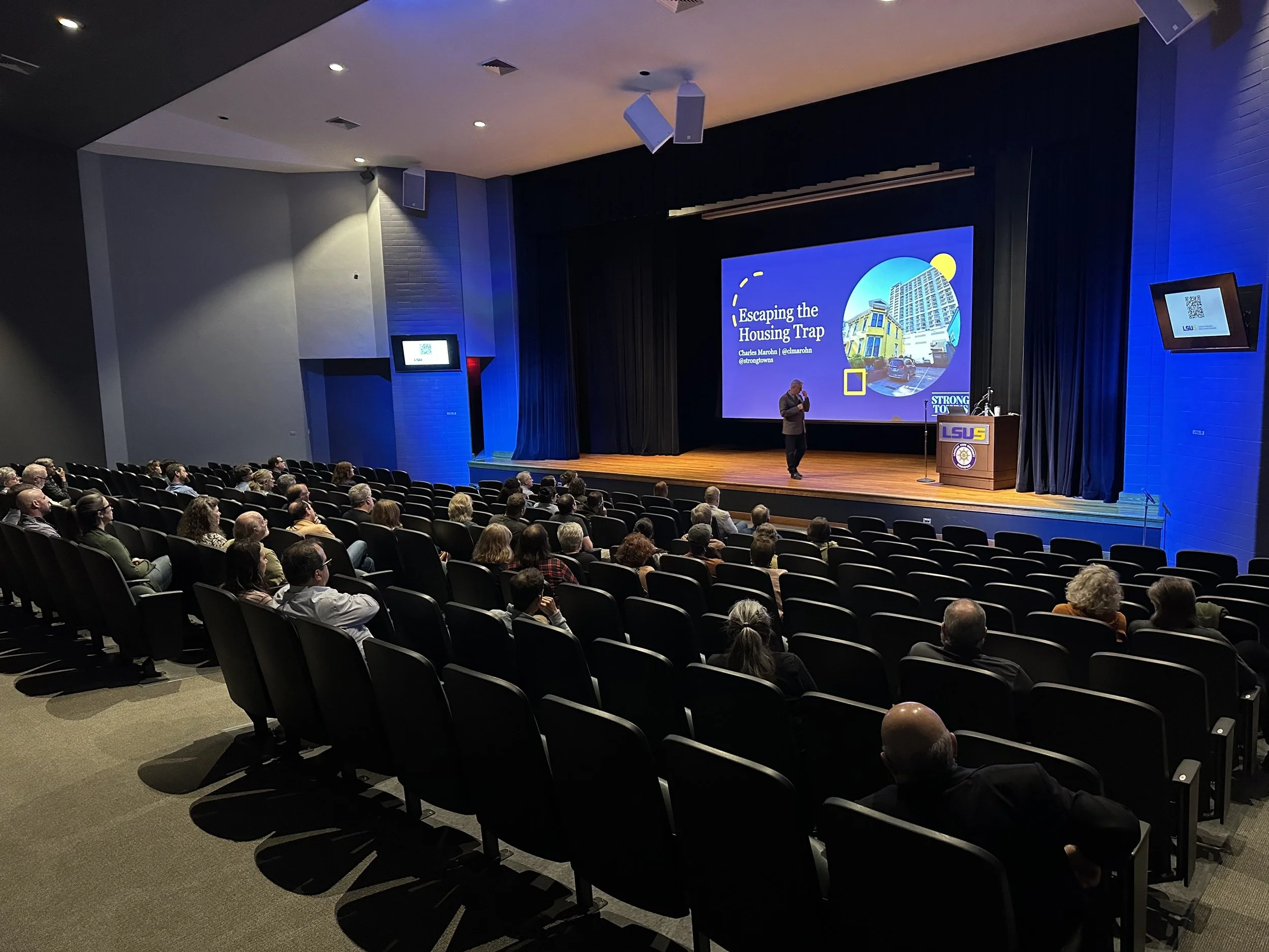 ReForm Shreveport partnered with the LSUS Center for Business and Economic Research to host Strong Towns founder and president Charles Marohn for the launch-day stop of his new book, Escaping the Housing Trap. The event was held on the campus of LSU Shreveport and brought together residents, planners, elected officials, developers, and advocates for a timely and grounded conversation about housing affordability.